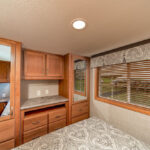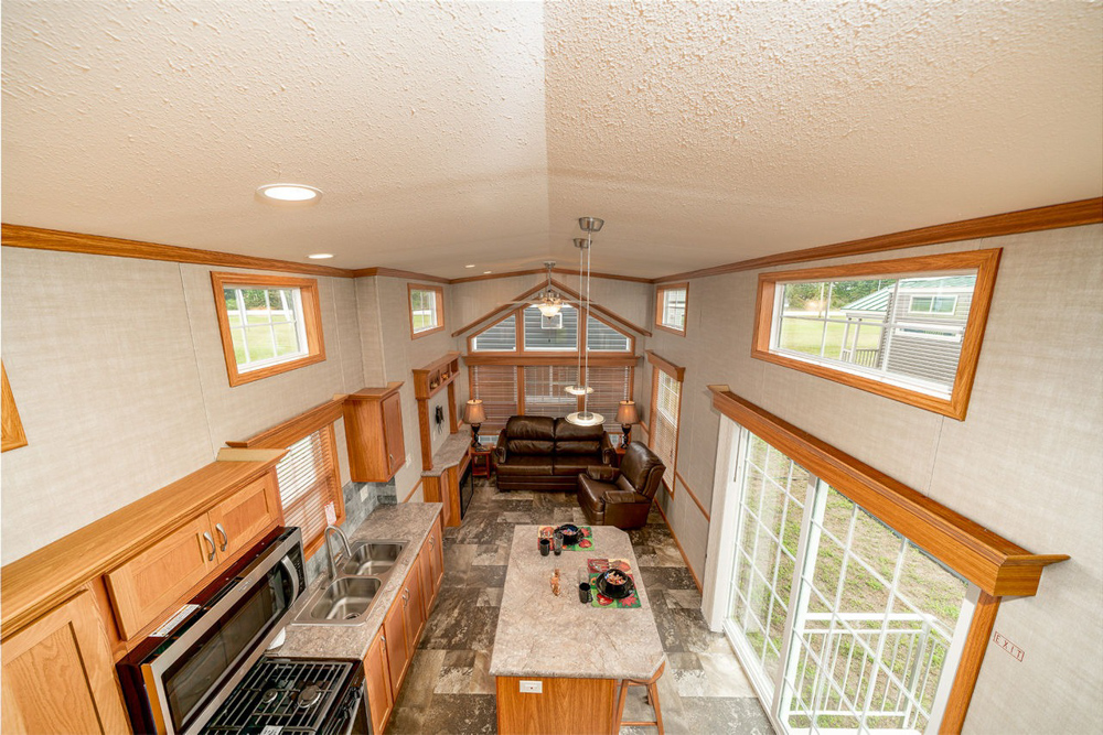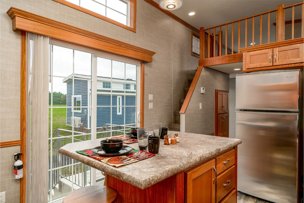 The Holmes model has 1 Bed and 1 Bath. This 399 square foot Park Model Loft home is available for delivery in Indiana, Illinois, Michigan, Ohio, Kentucky, Iowa, Minnesota, Wisconsin, Missouri, Tennessee.